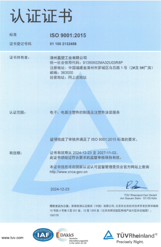 蘇州盈塑注冊(cè)成立、通過(guò)ISO9001、 IATF16949體系認(rèn)證