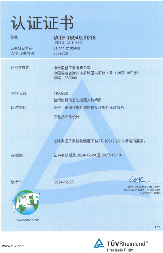 盈塑(馬來(lái)西亞)通過(guò)ISO 14001、 ISO/IATF16949體系認(rèn)證