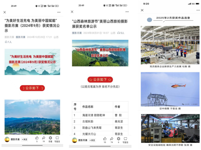 與山西攝影家協(xié)會、新華社、山西電視臺、人民攝影報等專業(yè)機(jī)構(gòu)、媒體合作,與文物、鄉(xiāng)村振興等政府部門對接,邀請利益相關(guān)方走進(jìn)保供和服務(wù)現(xiàn)場,深入鄉(xiāng)村振興、文物保護(hù)、非遺傳承一線舉辦聯(lián)合采風(fēng)活動。邀請主流媒體記者和基層通訊員聯(lián)合組建“電約拍”微信群,實時共享拍攝需求,暢通快速投稿、發(fā)稿渠道,利用主流媒體平臺提升影像作品傳播力引導(dǎo)力影響力公信力。